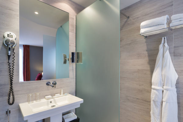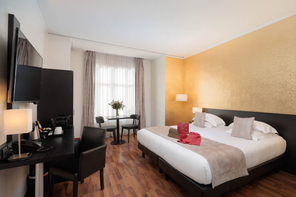 DOPPIA DELUXE: Camera elegante, di circa 25 mq, per 2 persone con un comodo letto king size o, secondo preferenza dei clienti, con 2 singoli. Offre ai clienti Tv a schermo piatto, aria condizionata, cassaforte, minibar, wi-fi, asciugacapelli.