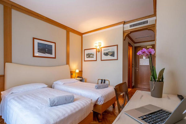 DOPPIA STANDARD BALCONE: Camera adatta ad ospitare 2 persone, di circa 19 mq, con vasca o doccia, telefono diretto, minibar, Tv sat, cassaforte, asciugacapelli, aria condizionata, wi-fi e balcone.