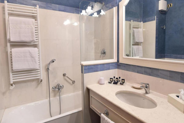 JUNIOR SUITE 3 PERSONE: Junior suite per 3 persone, con vasca o doccia, telefono diretto, minibar, Tv sat, cassaforte, asciugacapelli, aria condizionata, wi-fi, accappatoio, pantofoline e un balcone.