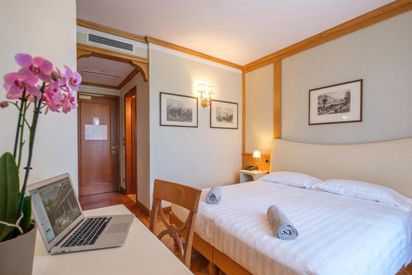DOPPIA USO SINGOLA: Camera doppia adatta ad ospitare una persona, di circa 19 mq, con vasca o doccia, telefono diretto, minibar, Tv sat, cassaforte, asciugacapelli, aria condizionata, wi-fi e un balcone.