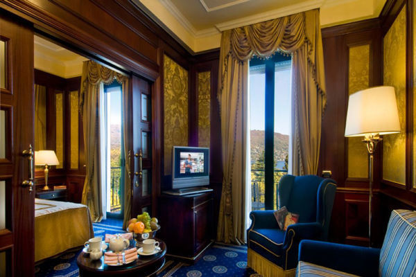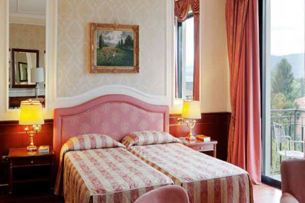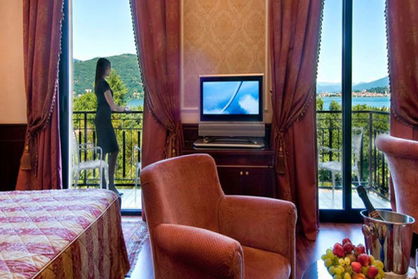 SUITE VISTA LAGO: Camera di circa 32 mq arredata elegantemente, dotata di soggiorno, camera da letto separata arredata con tessuti preziosi, bagno con decorazioni a mosaico e vasca idromassaggio, balcone privato con vista panoramica sul Lago Maggiore. Bagno con vasca o doccia, telefono diretto, minibar, Tv Sat, cassaforte, phon, aria condizionata, wi-fi, prodotti da bagno in omaggio, accappatoio e pantofoline.