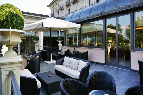 JUNIOR SUITE VISTA LAGO : Camera di circa 25 mq dotata di arredi eleganti, zona giorno con divano, tavolo e sedie, bagno con decorazioni a mosaico e interni in marmo, balcone privato con vista mozzafiato sul Lago Maggiore. Dispone di telefono diretto, minibar, Tv Sat, cassaforte, phon, aria condizionata, wi-fi, accappatoio e pantofoline, prodotti da bagno in omaggio.