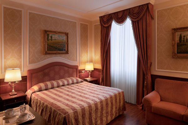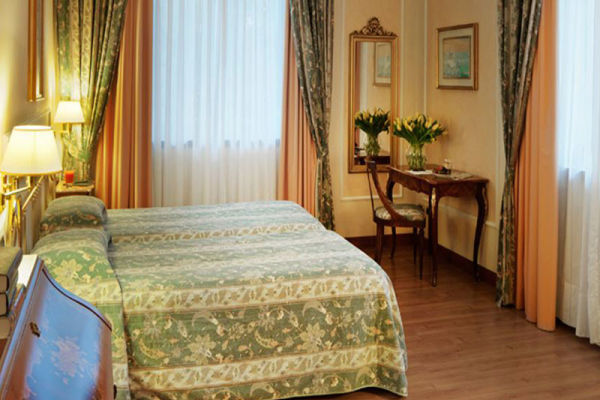 DOPPIA ECONOMY: Camera per due persone, di circa 15 mq situata al piano terra, sul retro dell'hotel, con pavimenti in legno. Dispone di bagno con vasca o doccia, telefono diretto, minibar, Tv Sat, cassaforte, phon, aria condizionata, wi-fi.