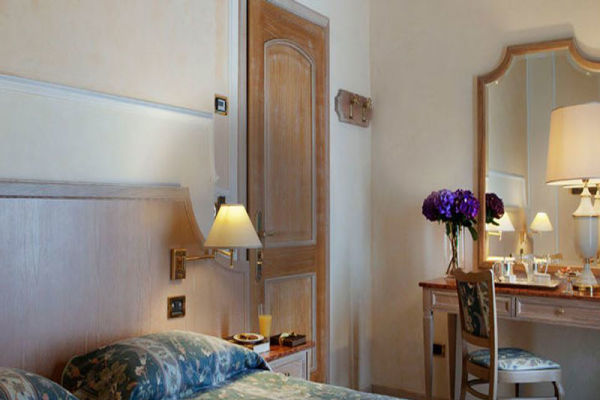 DOPPIA DIVANO O POLTRONA LETTO LATO MONTE : Camera per due persone, di circa 15 mq situata al piano terra, sul retro dell'hotel, con pavimenti in legno. Dispone di bagno con vasca o doccia, telefono diretto, minibar, Tv Sat, cassaforte, phon, aria condizionata, wi-fi.