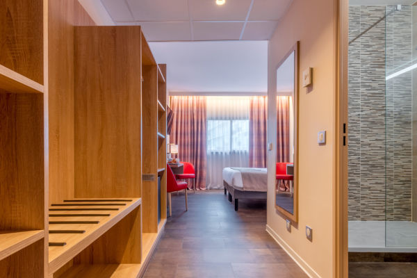 SINGOLA STANDARD: Accogliente camera di circa 15/18 mq, affacciata sul cortile dell'hotel, perfetta per un viaggiatore che desidera un comfort essenziale con un tocco di classe. Dotata di letto singolo, la stanza è pensata per offrire il massimo del relax.Climatizzazione autonoma e insonorizzazione, per un riposo ideale, Wi-fi, TV a schermo piatto, frigobar (bevande da acquistare alla reception), cassaforte, asciugacapelli e prodotti di cortesia.