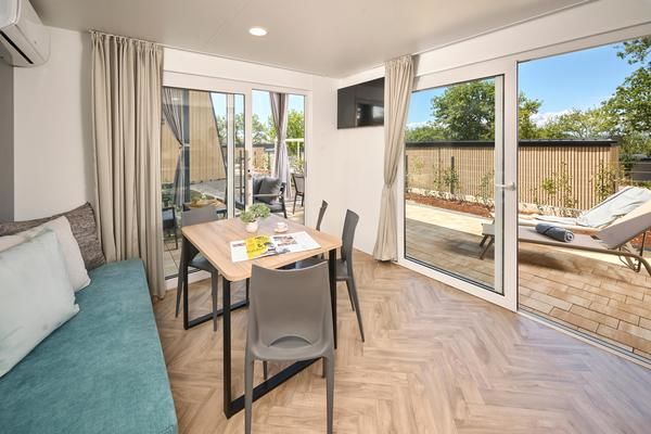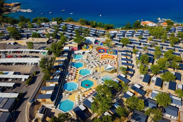 L'"Aminess Style Camping Atea Resort" si estende lungo un'incantevole spiaggia di ciottoli a Njivice, un tranquillo villaggio di pescatori sull'isola di Veglia.