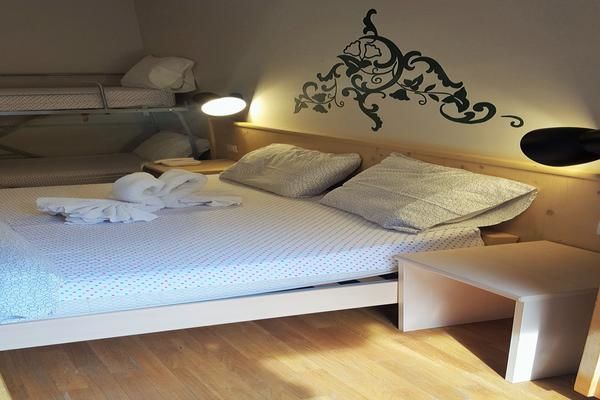 Numero di letti: Letto matrimoniale 1x, Letto a castello 1x, Letto con le sponde possibile per una persona in più: Sì