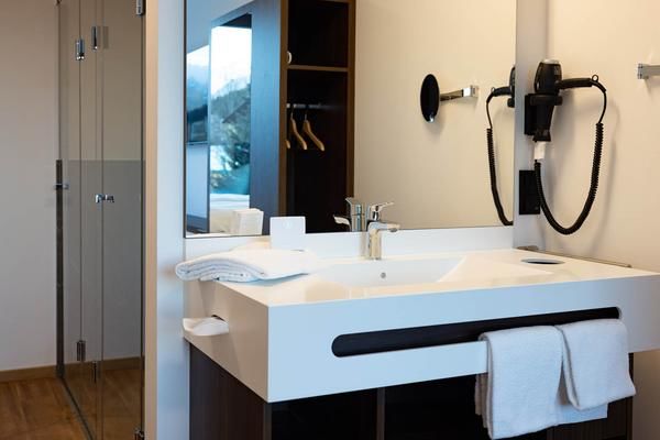 Per il vostro tempo libero, abbiamo creato un'ampia sala intrattenimento con simulatore di golf, calcio balilla e freccette. Per chi desidera rilassarsi in sauna dopo una giornata intensa, il nostro Maxi Bar nella hall dell'hotel offre anche una bevanda fresca.